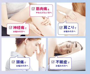 疲れや肩コリ、不眠症などの気になる症状を緩和します。